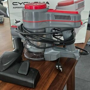 جاروبرقی: جاروبرقی Cyclonia یک جاروبرقی‌عصایی چندکاره است که با طراحی مدرن و وزن سبک خود، تمیزکاری روزانه را بسیار آسان می‌کند. این دستگاه با ترکیب قدرت مکش بالا و مصرف انرژی پایین، گزینه‌ای مناسب برای خانه‌ها، دفاتر و حتی خودرو است.