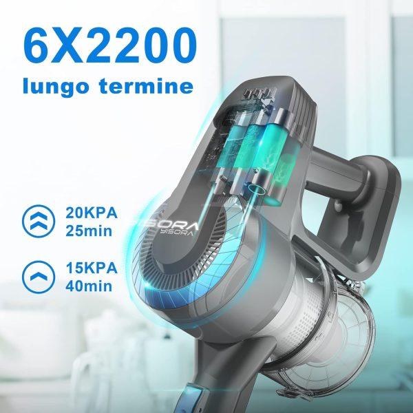 باتری ۲۲۰۰ میلیآمپر ساعت این جارو شارژی، تا ۴۵ دقیقه کارکرد مداوم را فراهم میکند. این ویژگی امکان نظافت کامل منزل یا خودرو را بدون نیاز به شارژ مجدد میدهد.