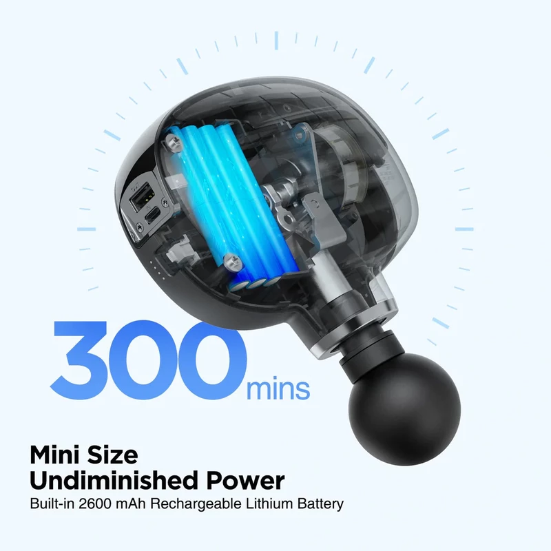 ماساژور برقی اوریکار مدل M1 mini:دارای یک باتری با کیفیت 2600 میلی آمپر ساعتی است و شارژ کامل از استفاده 300 دقیقه پشتیبانی می کند. همچنین با ایجاد نوآوری های تکنولوژیکی می توان از آن به عنوان پاوربانک برای ارائه بیش از 2 شارژ برای آیفون 13 استفاده کرد.