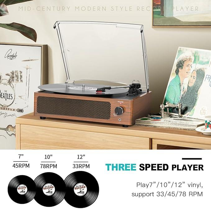 گزینه های سه سرعتی سه سایز – بازو متعادل با کنترل بازوی بلند کردن، پشتیبانی از تنظیم 3 سرعت گوش دادن (33-1/3، 45 و 78 RPM) و پخش 3 اندازه (7 اینچ، 10 اینچ و 12 اینچ)
